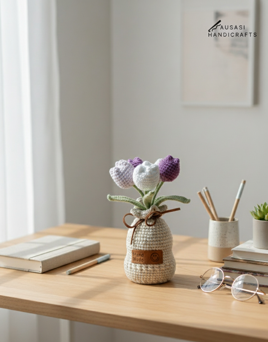 This is a handmade crochet tulip pot with four tulip flowers, made with tight and neat stitching. It is a... Read more