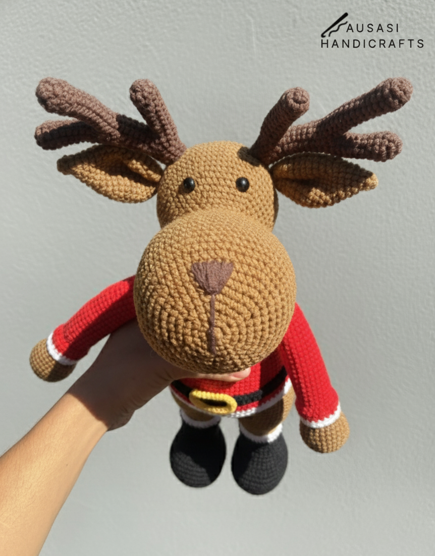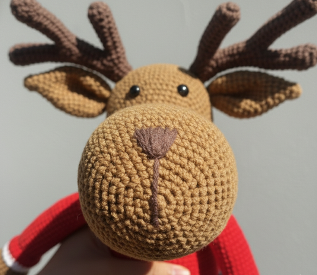 In red and brown colors, this crochet reindeer blends craftsmanship, comfort, and holiday spirit in every stitch. A perfect way to celebrate Christmas with something handmade, heartfelt, and truly one of a kind.