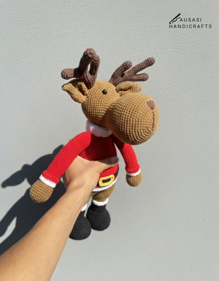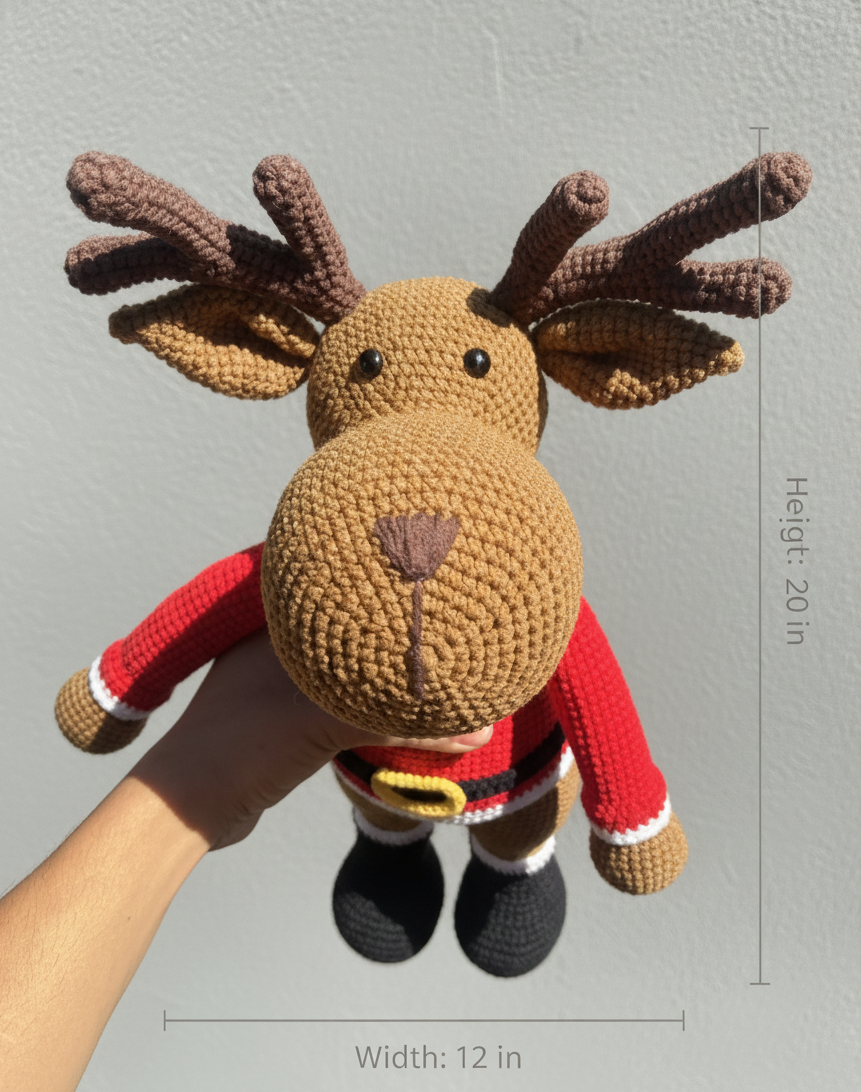Standing at around 20 inches tall and 12 inches wide, this adorable reindeer makes a perfect addition to your Christmas decor — whether displayed under the tree, on a shelf, or gifted to someone special. Every piece has its own unique touch, making no two reindeer exactly alike.