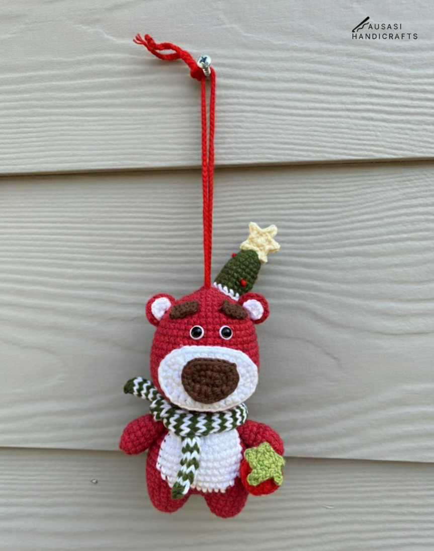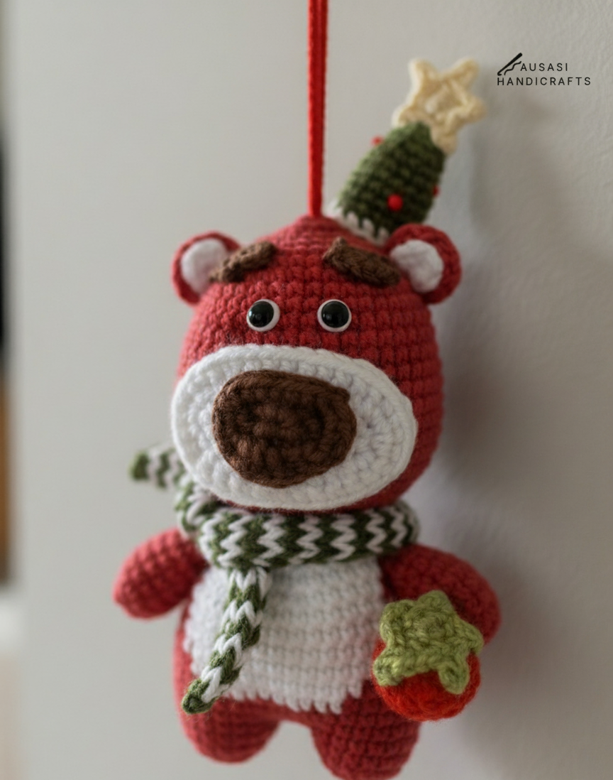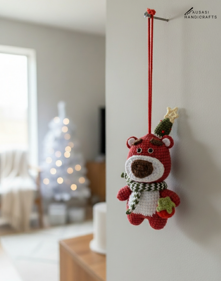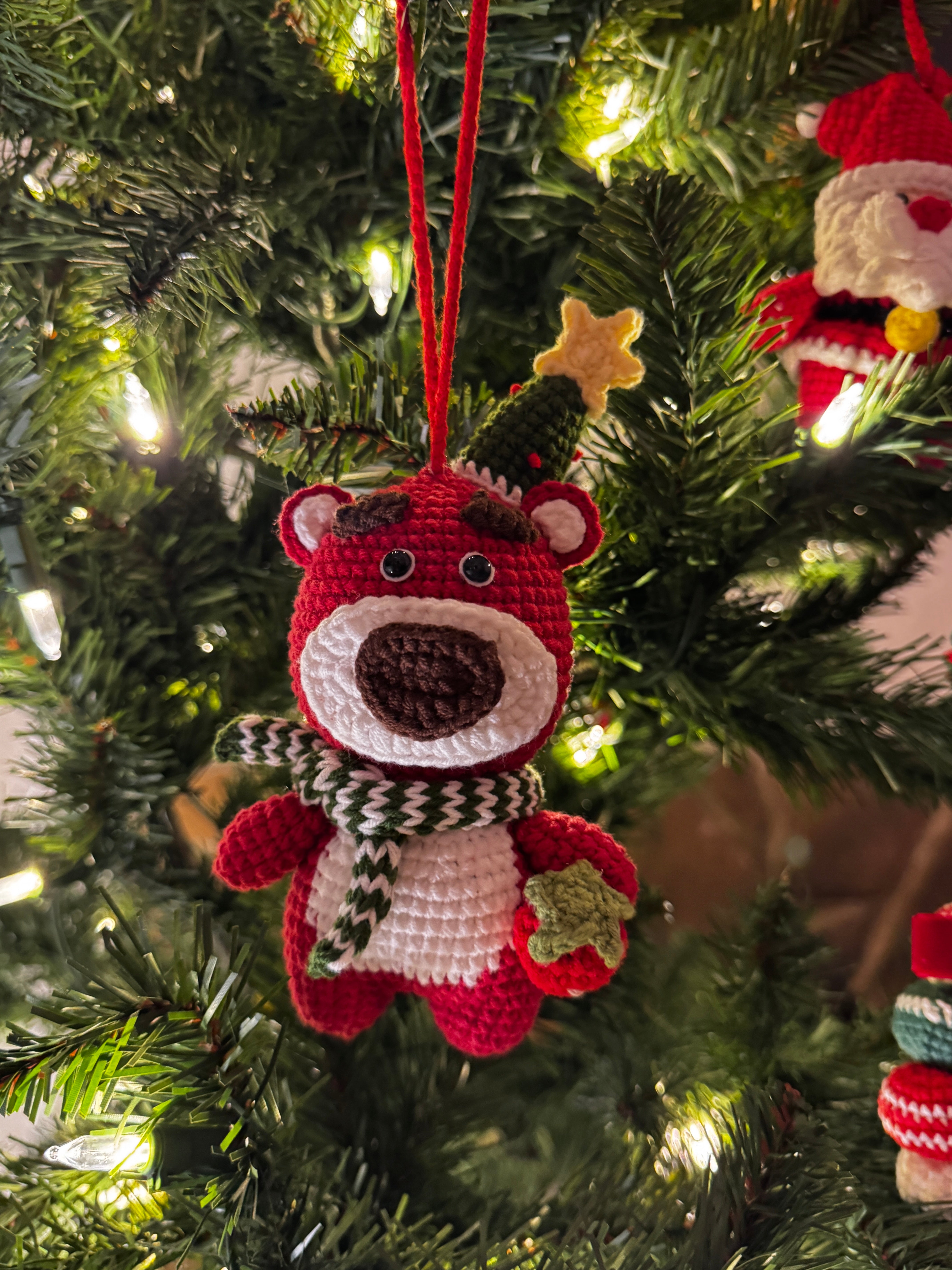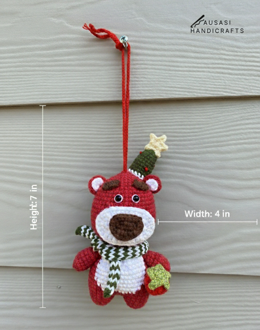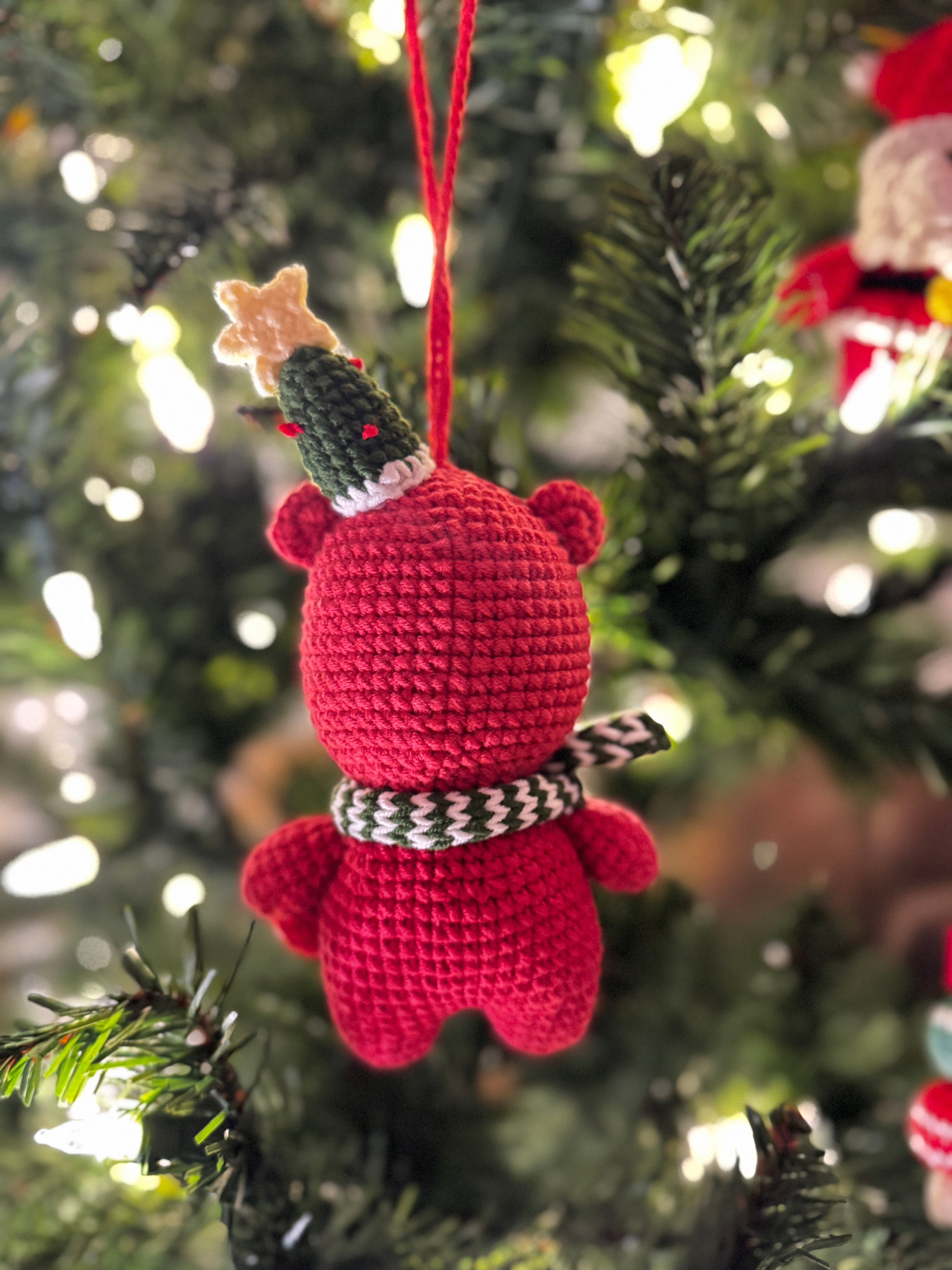 Perfect for hanging on your Christmas tree, wall, or gifting to someone special, this crochet bear adds a touch of handmade joy to any holiday setting. Each piece is carefully crocheted by hand, giving it a one-of-a-kind charm that makes your decor feel extra personal and heartfelt.