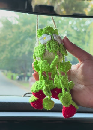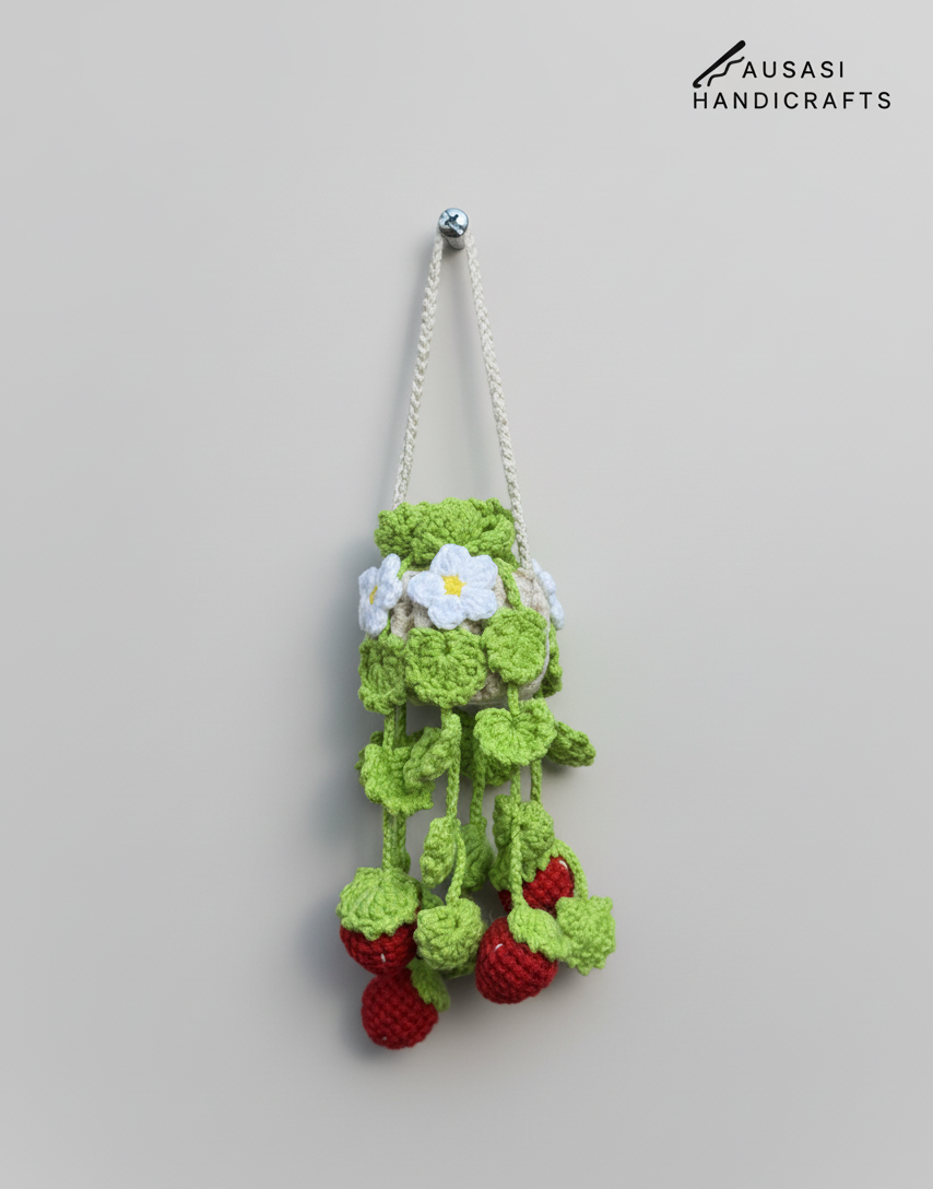 This is a handmade crochet Strawberry plant, carefully crafted with tight stitches and detailed leaf and flower patterns. The gradient of green to red tones gives it a fresh, natural look.