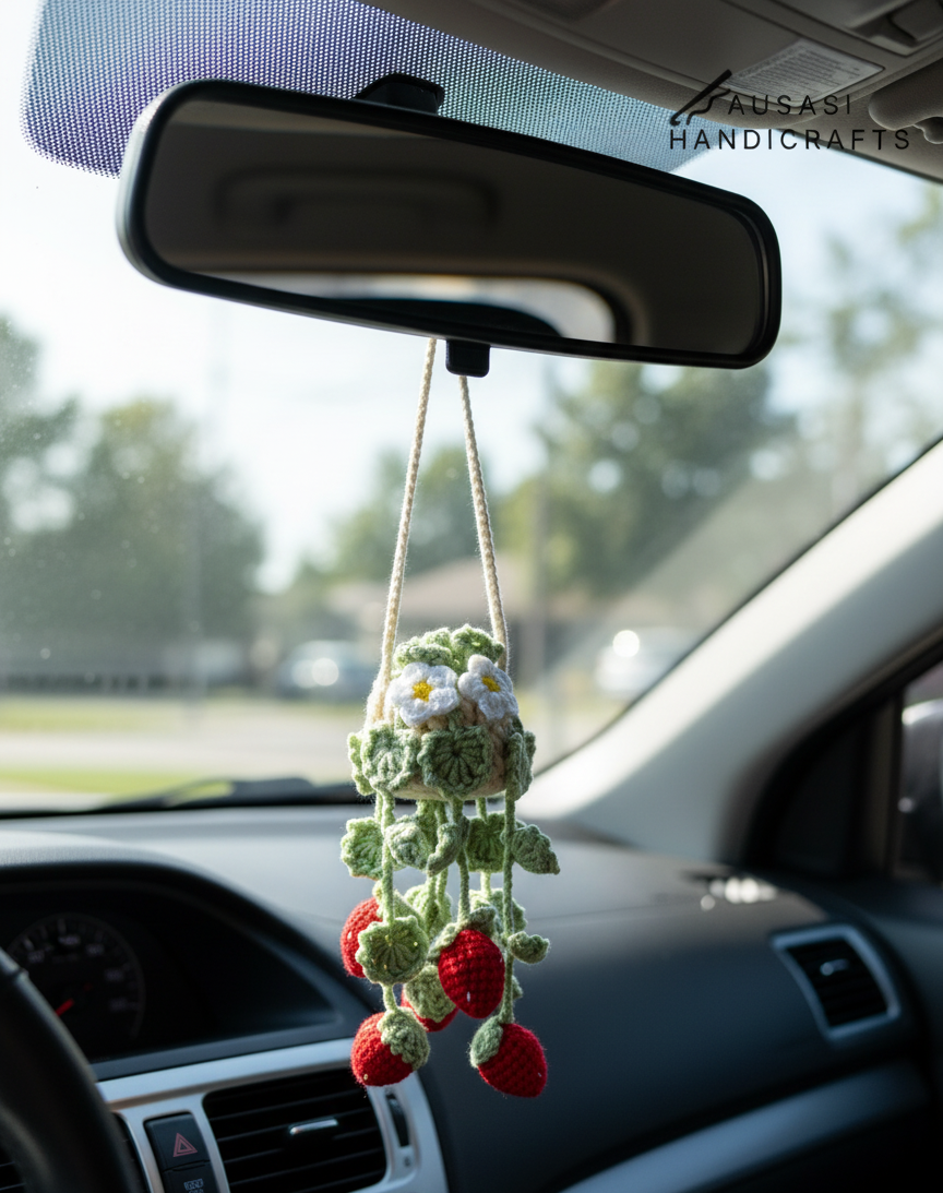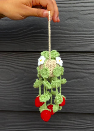 Crochet Strawberry Hanging ( Light Green Leaf)