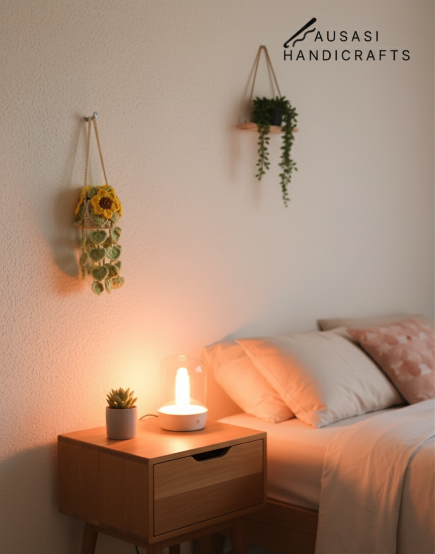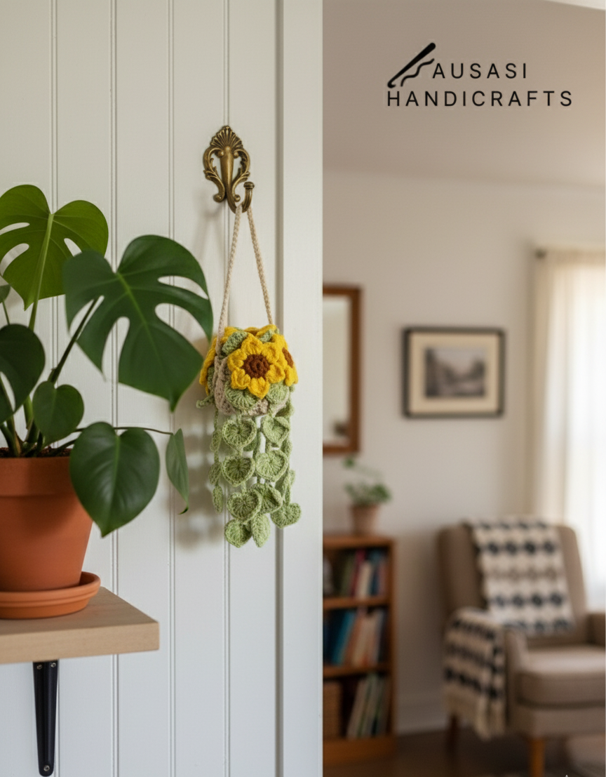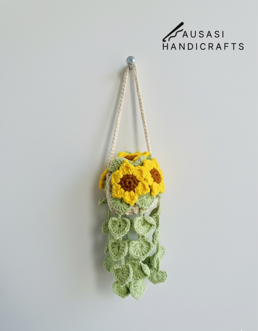 Description Crochet Hanging Plant Decoration This is a handmade crochet hanging plant , carefully crafted with tight stitches and detailed leaf and flower patterns. The gradient of Light green to yellow tones gives it a fresh, natural look.