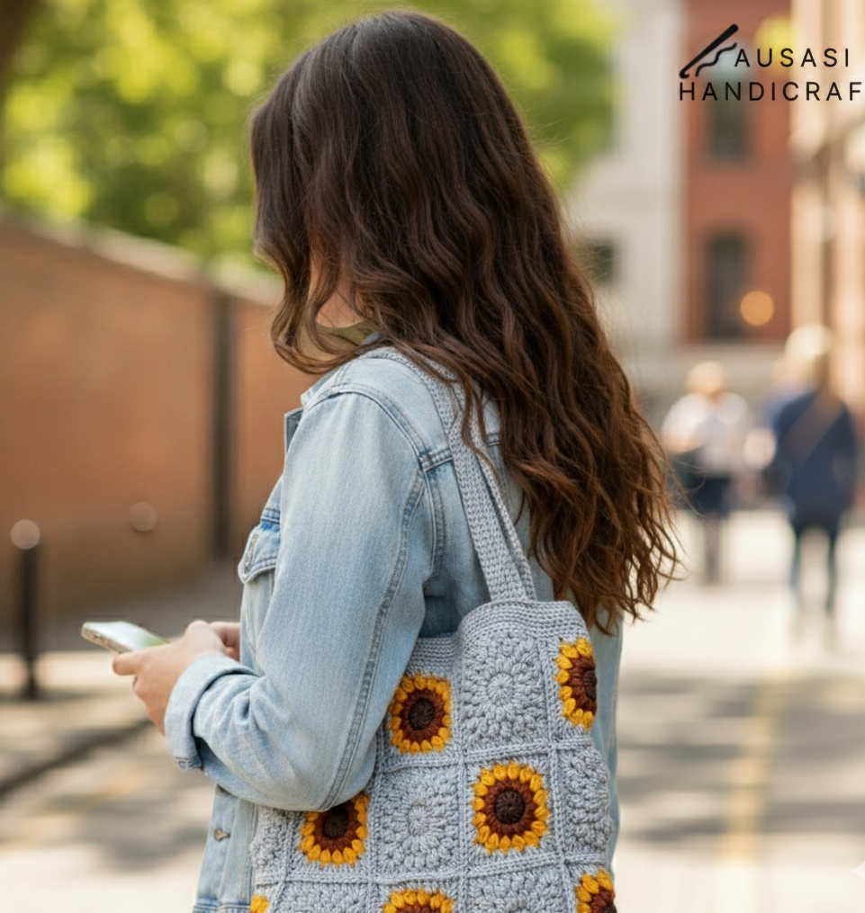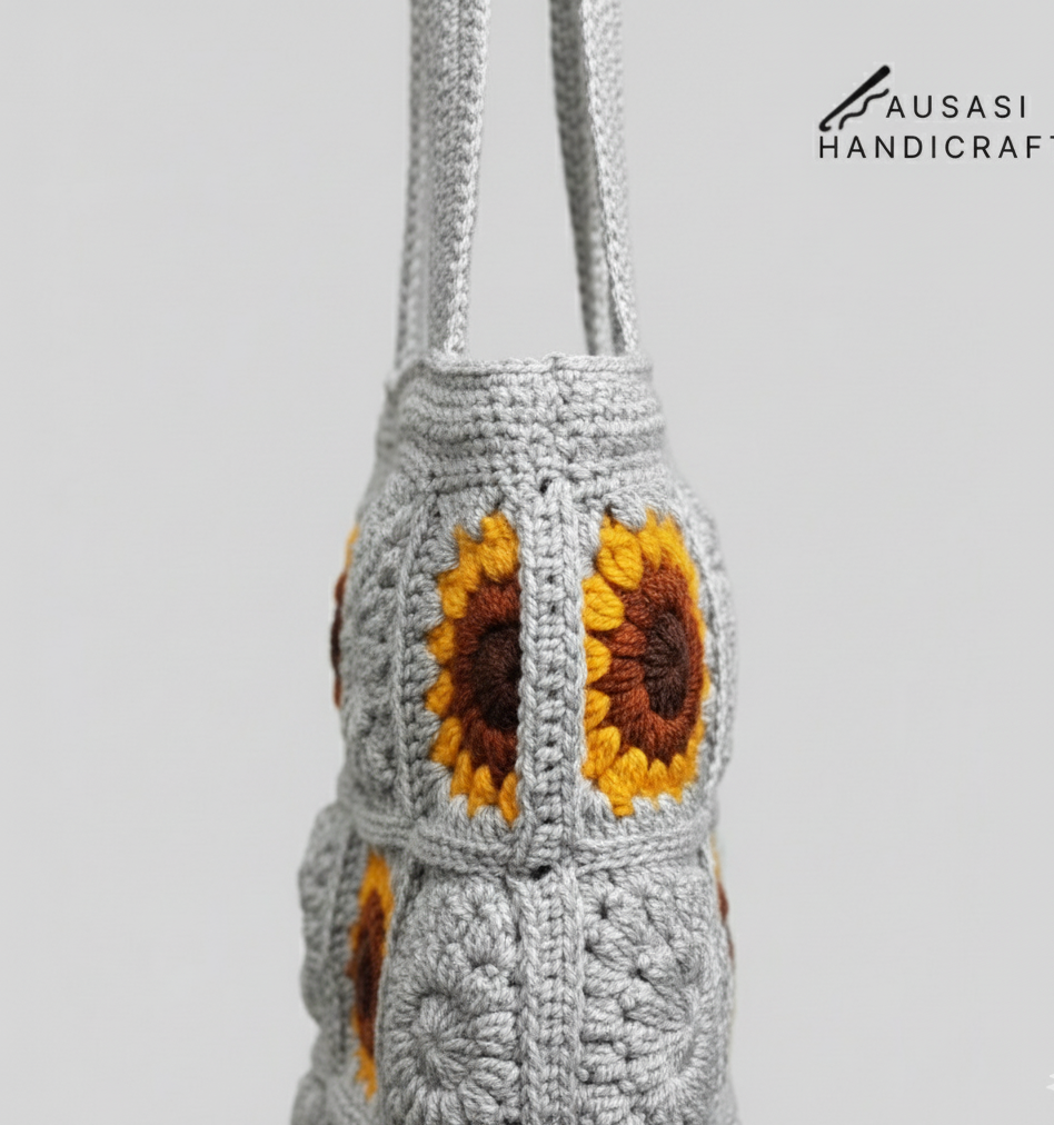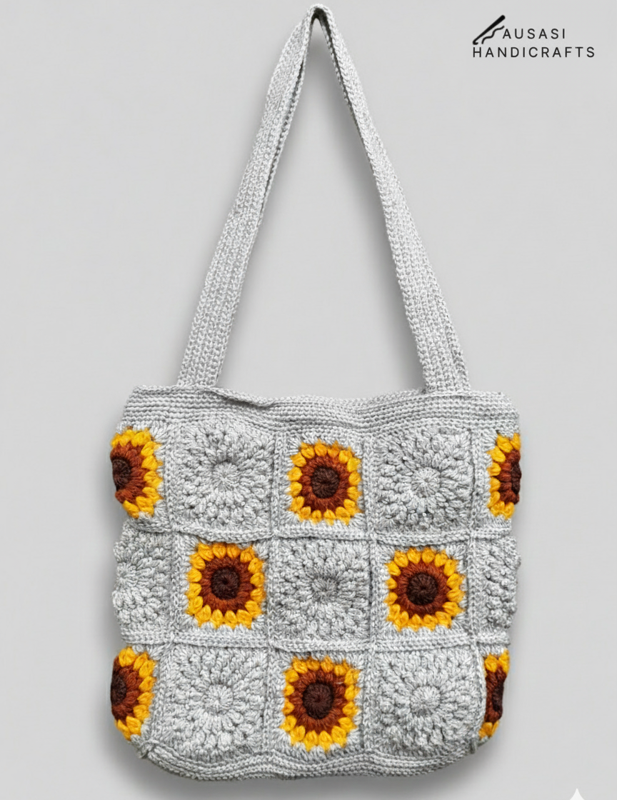 Handmade Sunflower Crochet Bag (Grey) This beautiful, handmade crochet bag features a stunning rose design. Made with high-quality yarn and... Read more