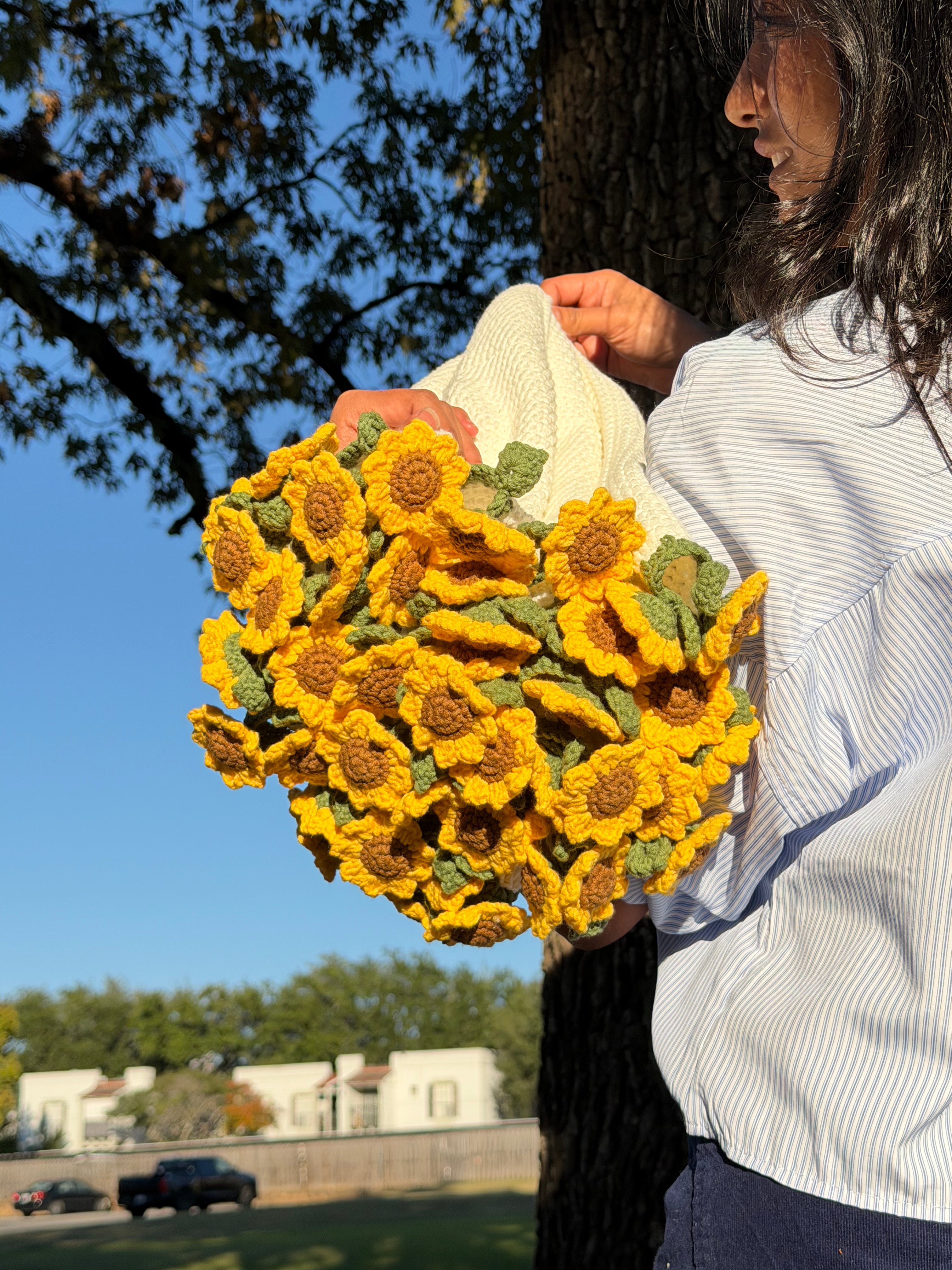 This is not just a blanket—it’s art in yarn. Every fold of this crochet sunflower blanket bouquet is purely handmade, designed from our own self-created pattern, making it truly one-of-a-kind. You won’t find another piece like it anywhere.