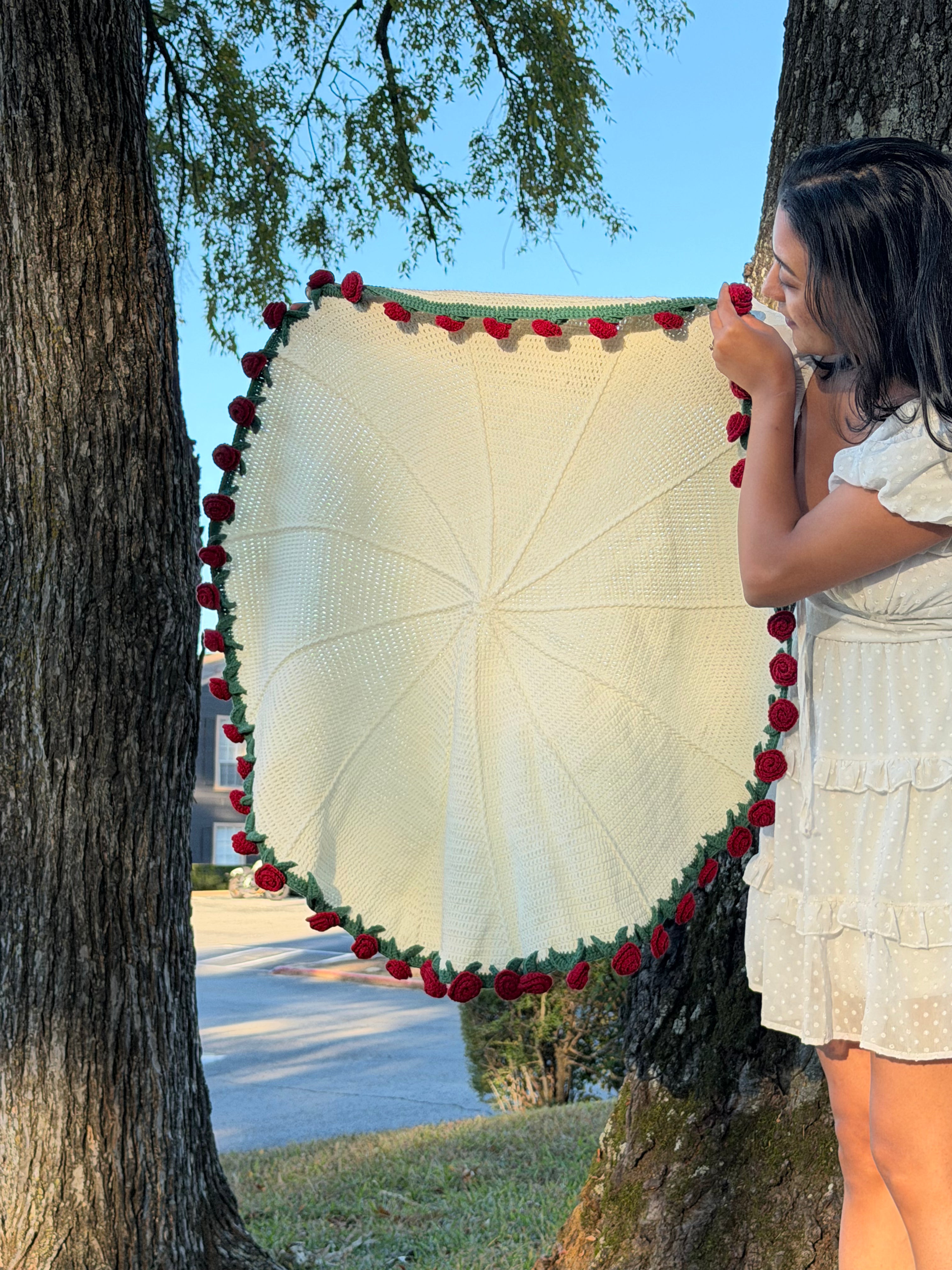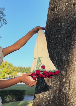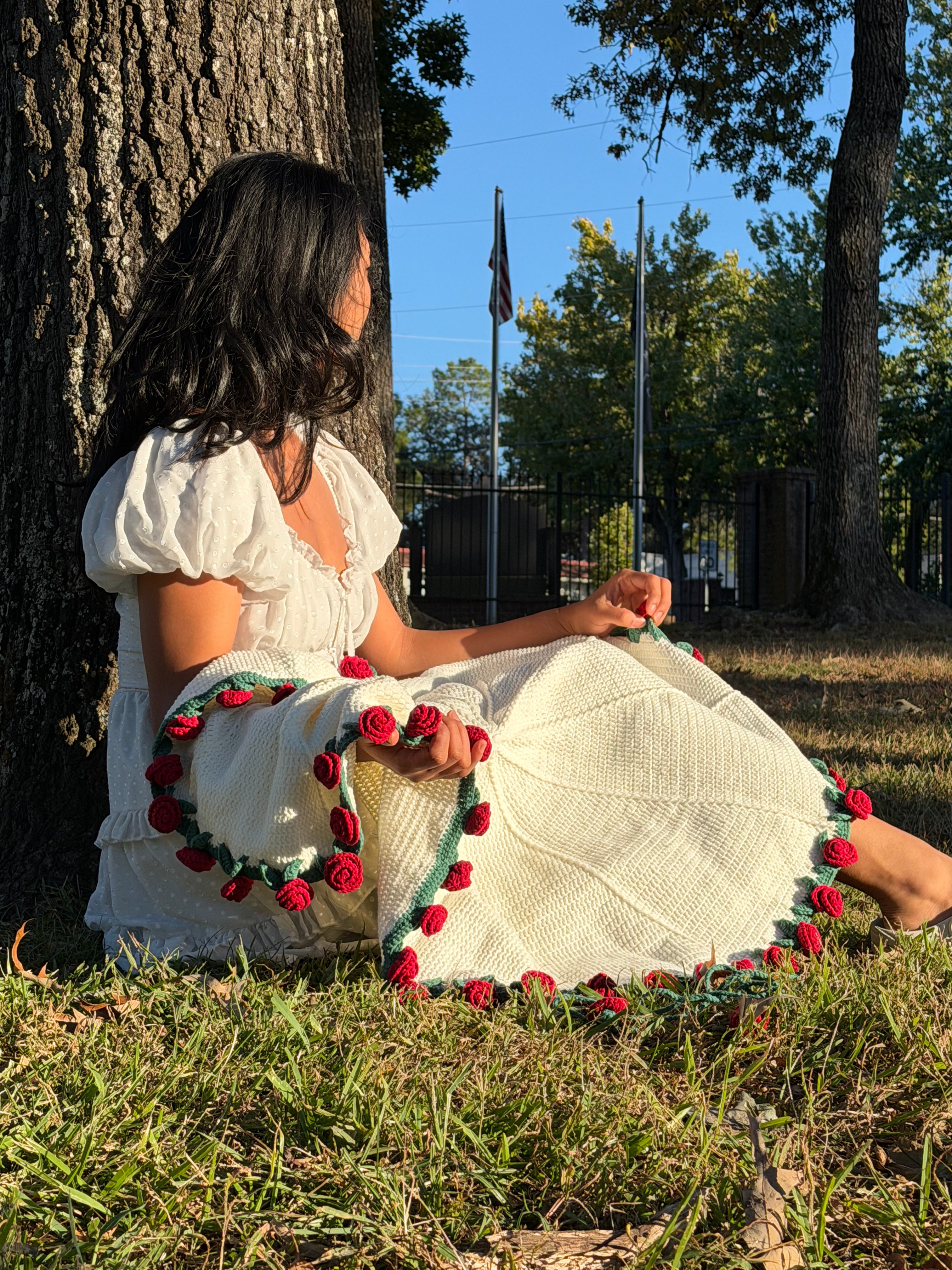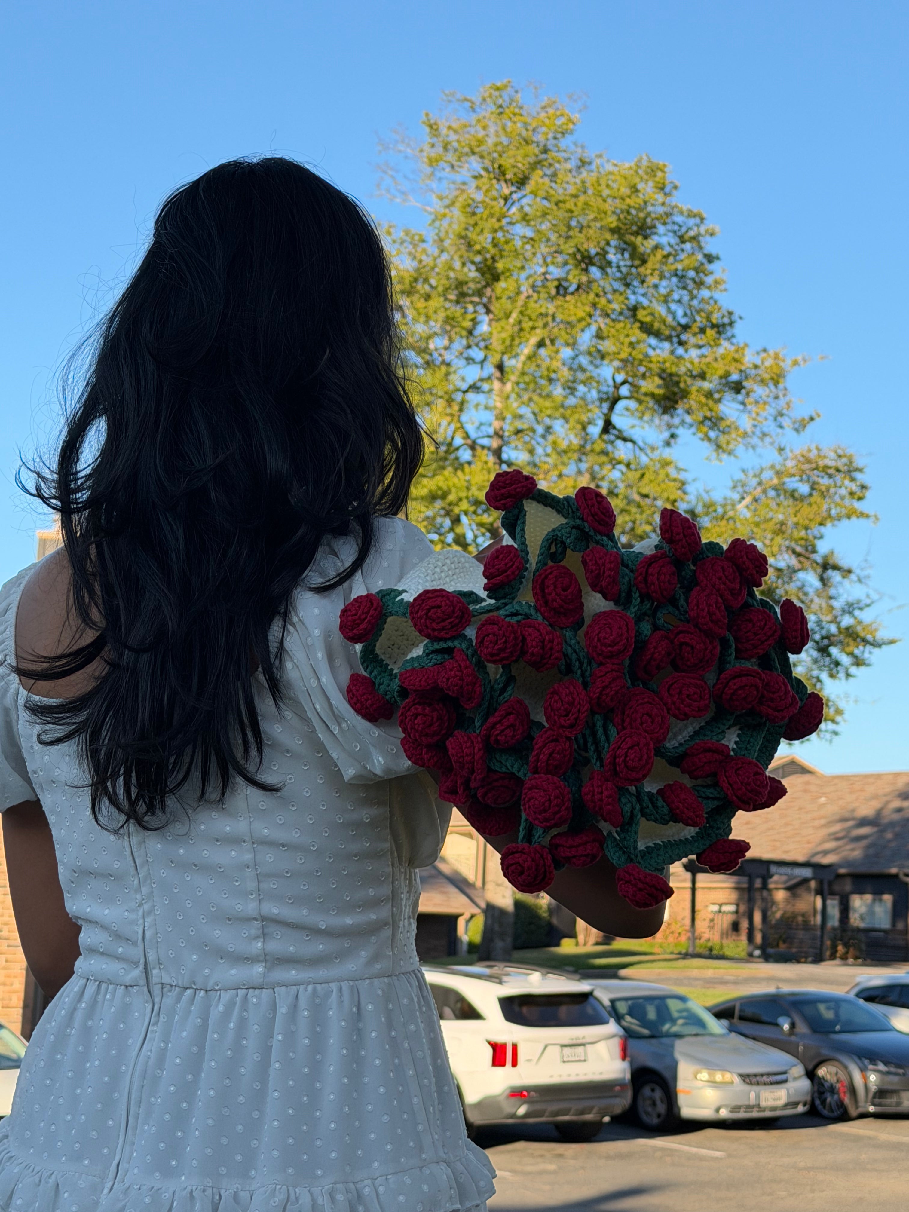 Each rose is carefully shaped with the finest quality yarn, giving the bouquet both beauty and strength. The blanket is tightly stitched and meticulously crafted, a process that takes about 19 hours from start to finish. You can see the details in every thread—the depth of the roses, the texture of the leaves, and the precision of the design.