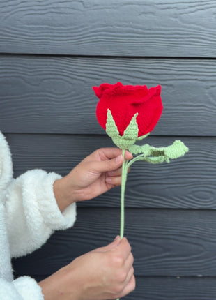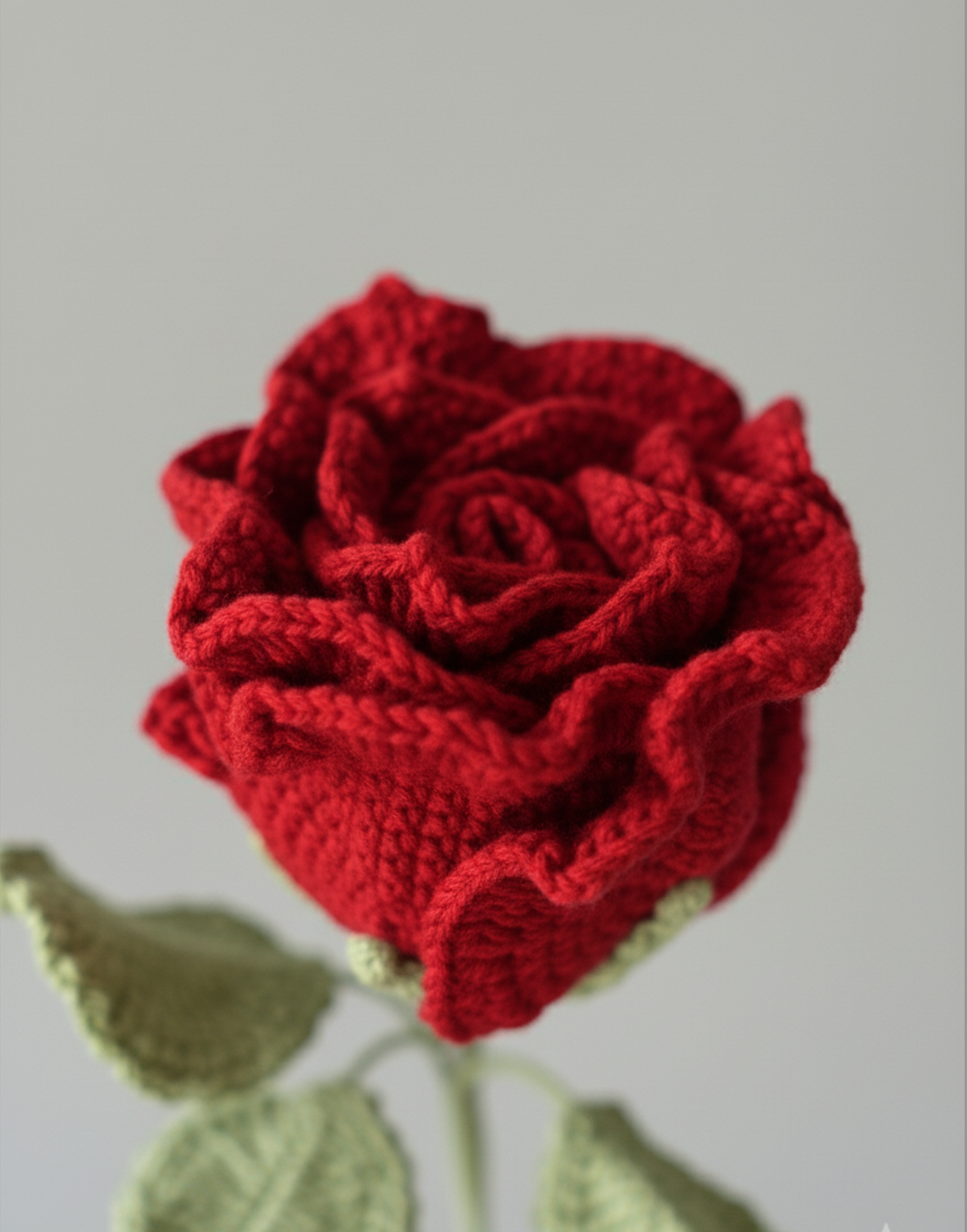 This beautiful, handcrafted crochet rose is a unique and lasting alternative to fresh flowers. Each petal and leaf is carefully crafted using high-quality yarn with tight, intricate stitches that give the rose a lifelike texture and shape.