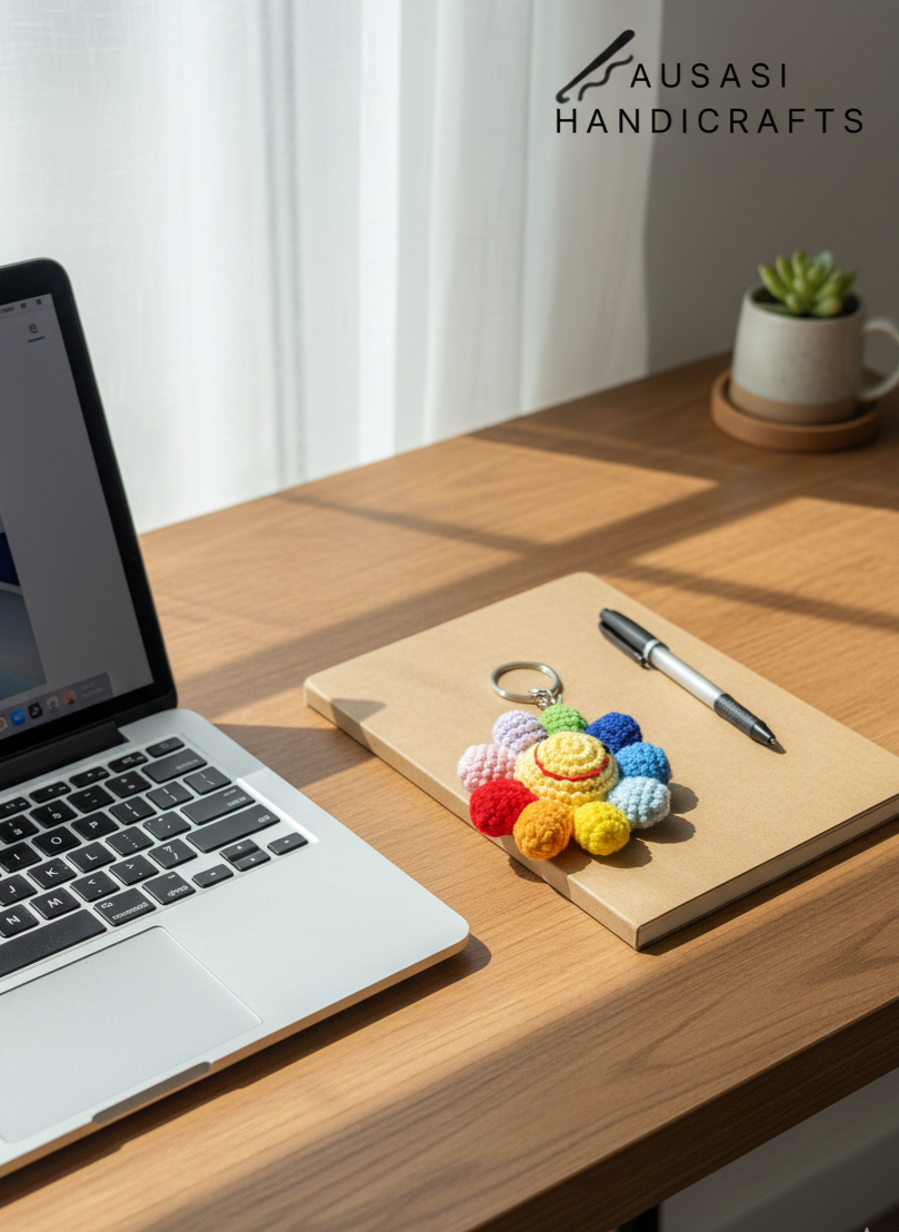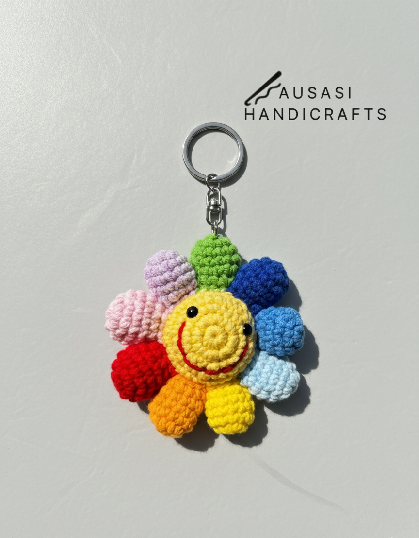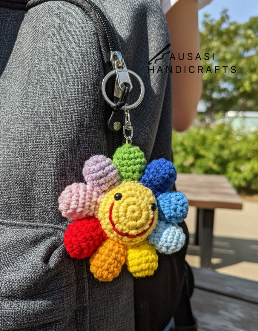 his unique crochet Happy Flower keychain is a handcrafted burst of color and cheer. Designed with a distinct smiley face... Read more