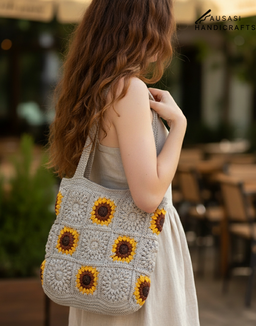 Handmade Sunflower Crochet Bag This beautiful, handmade crochet bag features a stunning rose design. Made with high-quality yarn and durable... Read more