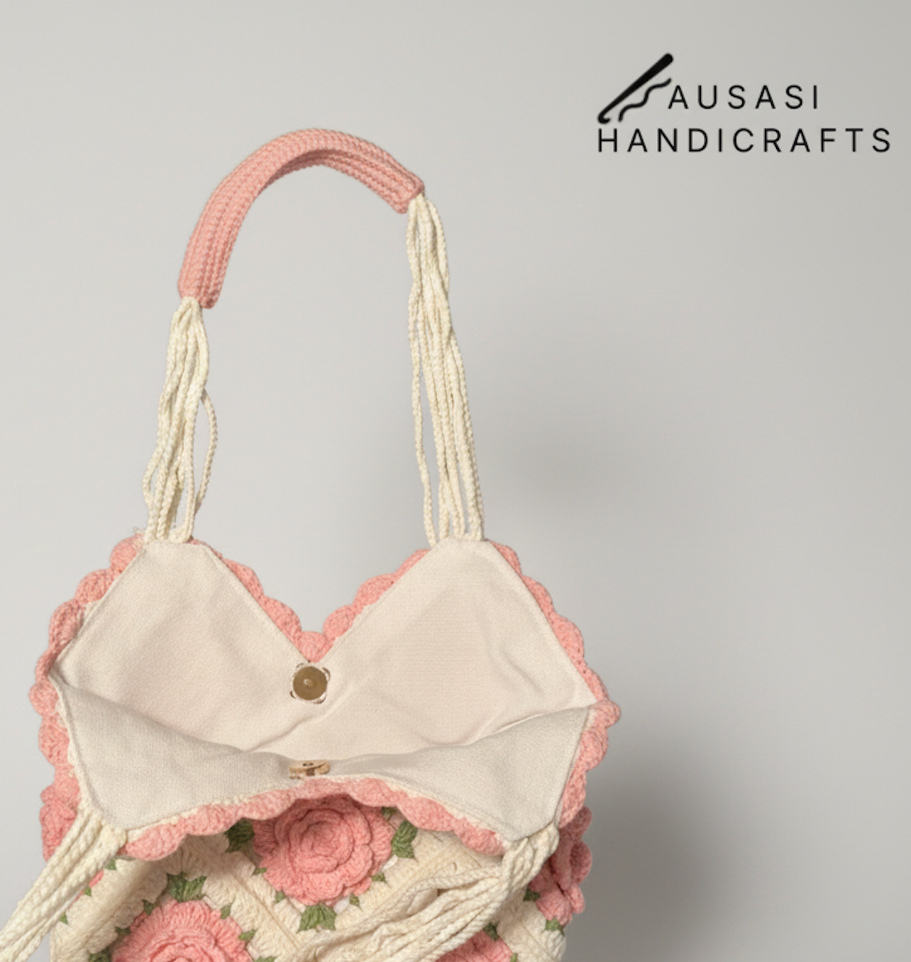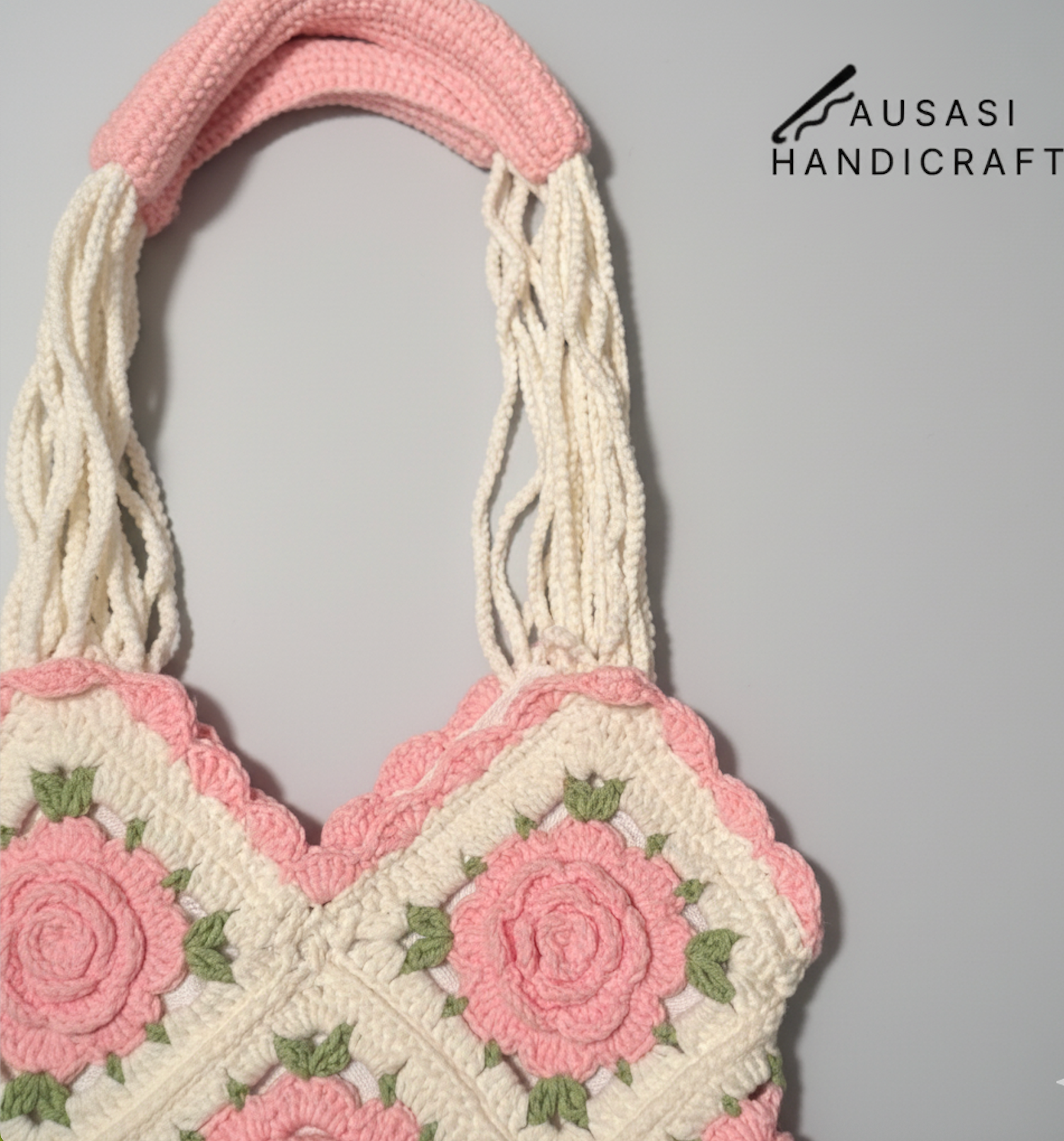 Handmade Rose LOOP Crochet Bag (Pink) This beautiful, handmade crochet bag features a stunning rose design. Made with high-quality yarn... Read more